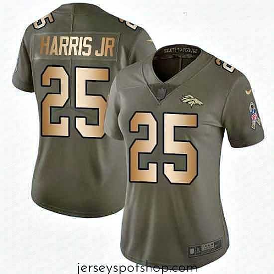 Export quality Womens Nike Denver Broncos 25 Chris Harris Jr Limited OliveGold 2017 Salute to Service NFL Jersey an ideal choice for international sports enthusiasts